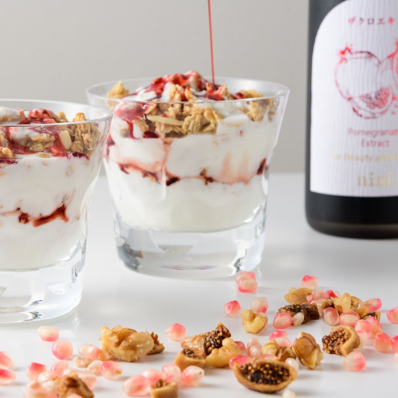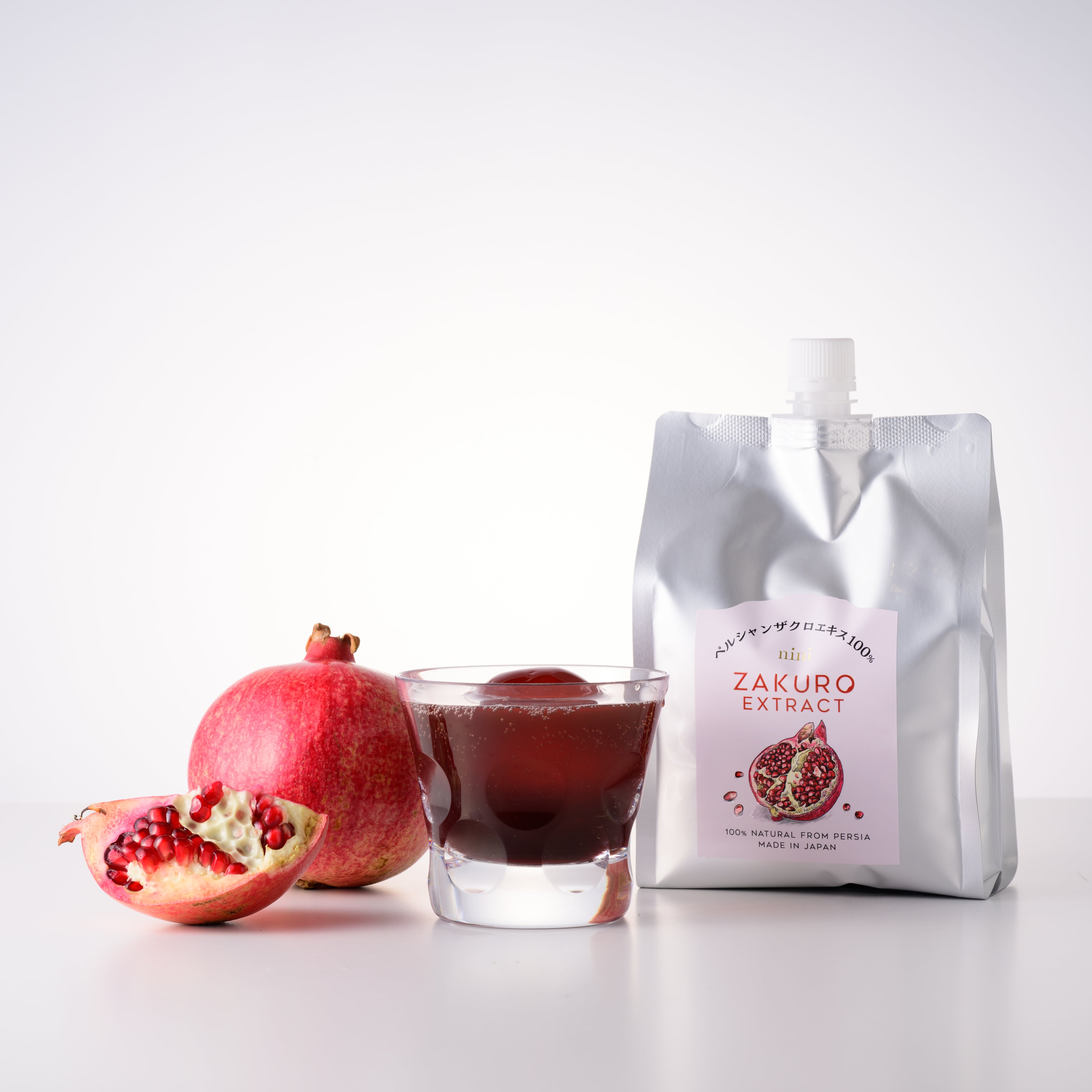 美容と健康にかかせない美容成分(ウロリチンの元となるエラグ酸を含むポリフェノール、カリウム、葉酸、ビタミンC)をたっぷりと含んだ高品質の無農薬ペルシャ産ザクロを100%使用したザクロエキス。