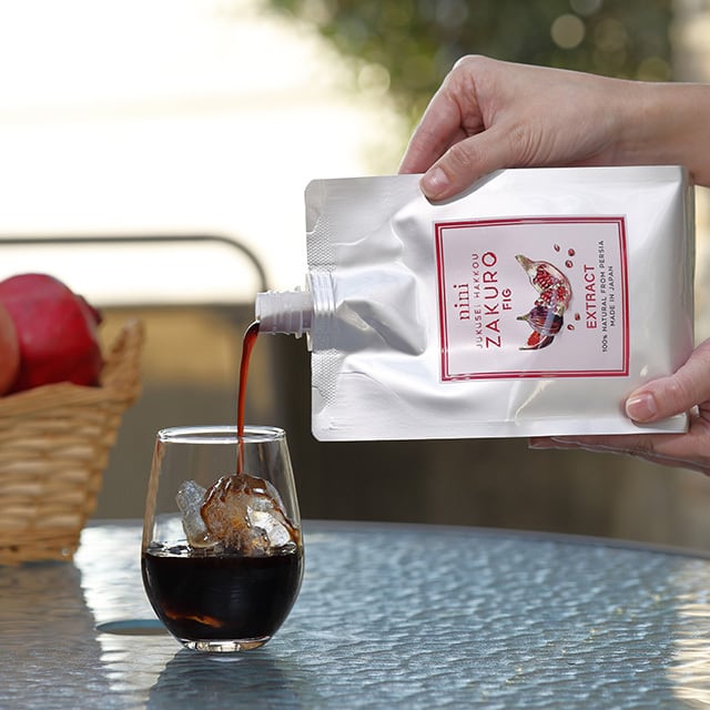 健康を第一に考えるniniが選んだのは、砂糖や添加物による甘味づけではなく、果実を発酵させることで生まれる自然な甘みと旨みです。発酵によって果実内部の糖や有機酸のバランスが変化し、酸味はやわらぎ、やさしい甘みとともに栄養価が高まります。また、発酵食品となることで、お腹の善玉菌をサポートすることも「熟成発酵ザクロエキス(ザクロ・イチジク)」の特長です。