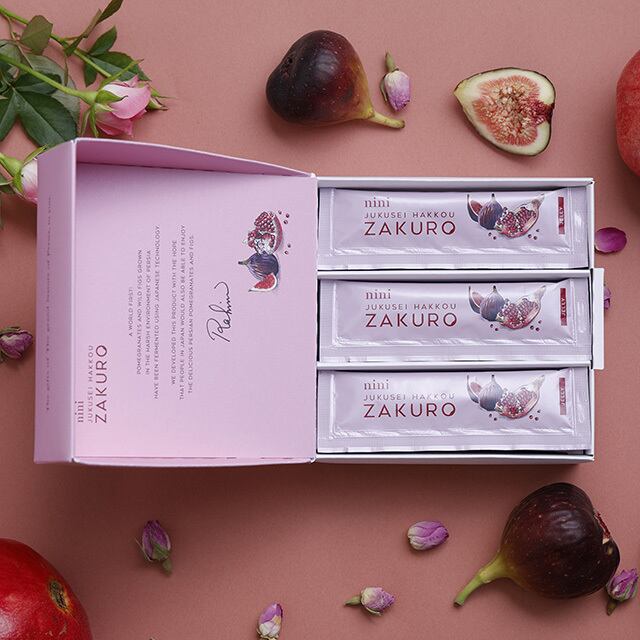 そして2025年、 nini独自の熟成発酵技術をさらに応用し、ザクロと2種のイチジクを使用した「熟成発酵ザクロエキス(ザクロ・イチジク)」の開発に成功。「熟成発酵ザクロエキス(ザクロ・イチジク)」は高濃度ポリフェノールを含むペルシャ産マラス種ザクロと、ペクチンやビタミン、ミネラル豊富な2種類のイチジクを厳選し、砂糖や添加物を加えずに果実本来の栄養を濃縮した栄養補助食品です。