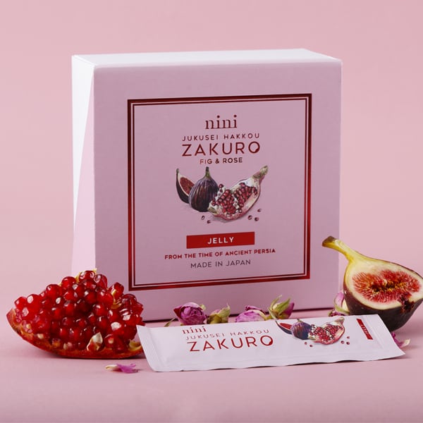 niniはゼリー状に加工できる特性を生かして、携帯性や食べやすさ、美味しさと機能性の両立を実現。果実やダマスクローズの風味を損なわず、心地よい弾力と上品な味わいを楽しめる、niniならではのインナーケア設計です。健康を第一に考えるniniが選んだのは、砂糖や添加物による甘味づけではなく、果実を発酵させることで生まれる自然な甘みと旨みです。発酵によって果実内部の糖や有機酸のバランスが変化し、酸味はやわらぎ、やさしい甘みとともに栄養価が高まります。また、発酵食品となることで、お腹の善玉菌をサポートすることも「熟成発酵ザクロゼリー(ザクロ・イチジク・ダマスクローズ)」の特長です。