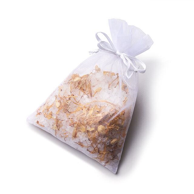 ウルミエ塩湖の天然塩をベースに、日本人のデリケートな肌に合わせて、色鮮やかなマリーゴールドの花びらと、イランイラン精油・ジャスミン精油の香りの力で、さらに美容効果を高めた100%ナチュラルバスソルト。